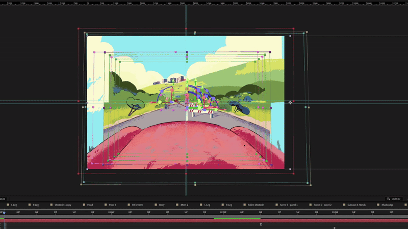 The main challenge lay in the animation pipeline. Movement needed to adhere to the logic of fake 3D while preserving the cutout style's integrity. This required careful planning of anchor points, parenting structures, and camera rigs to avoid distortion or visual inconsistencies.